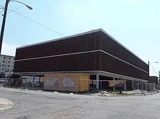 The Scott's Addition neighborhood of Richmond was a sparsely populated residential district during the early 20th century, but as suburban development spread outwards from the city center during the 1940s, much of the area was rezoned for commercial use.[3] In 1953, the 843-foot-tall (257 m) WTVR TV Tower was completed, becoming the world's second-tallest lattice tower after the Eiffel Tower.[4]