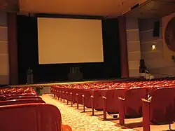 Following A. Emory Wishon's death in 1948, the theater property was sold to a Fox Theaters subsidiary by his estate.[7] The theater was converted to CinemaScope in 1954, resulting in the removal of a false proscenium stage.[8] The theater stopped showing first run films in 1980 and switched to a repertory cinema format. The theater later ran foreign films for several years until 1989 when it ceased operation. The theater was deeply in debt and running films was no longer economically viable. A Certified Historic Rehabilitation began on the property, renovating the theater and retail wings. Following the restoration, the theater reopened as the "Tower Theatre for the Performing Arts". The renovation earned awards from the California Preservation Foundation and the San Joaquin Chapter, American Institute of Architects.[9]