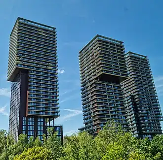 Towers 1 and 2 will be used for privately financed housing, while tower 3 will contain around 670 micro-apartments for students and young professionals.[6] The project volume is more than 300 million euros.[7][8]