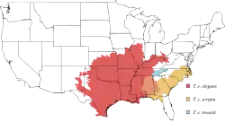T. s. elegans – red-eared slider[2] | Midwestern United States to northern Mexico |