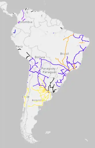 There are and were also some lines using different narrow gauges; see Narrow-gauge railways in South America.