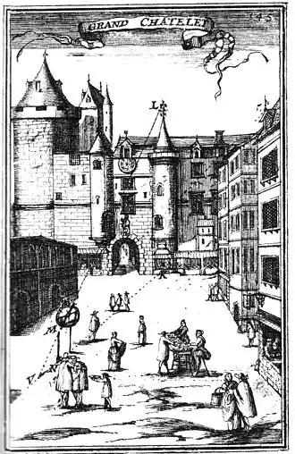 Jean II's standards are preserved in the Conservatoire Nationale des Arts et Métiers, which also holds a set of later-still physical standards from the 15th century, the so-called pile de Charlemagne.[21][23] This pile defined the weight of 50 marcs, i.e. 400 onces, and thus 25 livres actuelles, or 331⁄3 livres esterlins.[14][24] It had been kept in the royal palaces originally.[25] In 1540 François I (1494–1547) had transferred it to the Cour des monnaies, where it had been held in a cabinet with three locks, whose keys had been held separately by the president of the Cour, one of its counsellors, and a clerk.[25]
