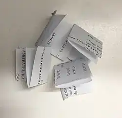 In many Indian variations of tag, the player who is supposed to tag the other players is referred to as the "denner".[84][86] There are a number of ways of determining which player should be the denner; one such method is Saa Boo Three (also known as pugam pugai), in which three players face one of their hands either up or down, and if one of them faces their hand the opposite direction of the other two, then that player is the denner.[87][88]