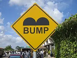 Road signs in Nigeria do not differ greatly from those used in the rest of the African continent. However, it notably makes use of a yellow background for warning and prohibitory signs, as well as yellow text for the stop sign.[16]