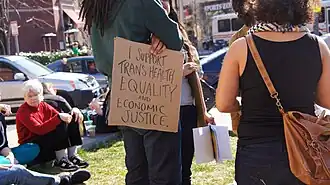 Transgender health care includes the prevention, diagnosis and treatment of physical and mental health conditions which affect transgender individuals.[1] A major component of transgender health care is gender-affirming care, the medical aspect of gender transition. Questions implicated in transgender health care include gender variance, sex reassignment therapy, health risks (in relation to violence and mental health), and access to healthcare for trans people in different countries around the world. Gender-affirming health care can include psychological, medical, physical, and social behavioral care. The purpose of gender-affirming care is to help a transgender individual conform to their desired gender identity.[2]