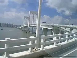 The Lotus Bridge links Cotai with Hengqin New Area of Zhuhai. Unlike mainland China, where traffic drives on the right, traffic in Macau and Hong Kong drives on the left, therefore a special design has been used to build this bridge to facilitate the change in driving directions.