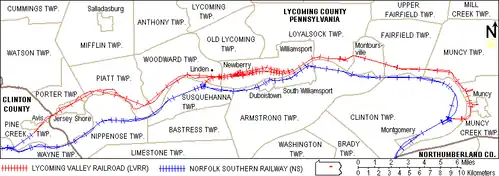 Transportation in Lycoming County, Pennsylvania has a long and varied history. The area was settled in the mid 1700s. Transportation was mostly using the Susquehanna River and railroad as Williamsport was a travel hub or center for Central Pennsylvania.