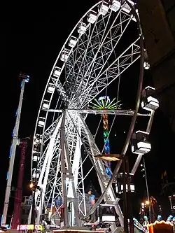 A traveling carnival (American English), usually simply called a carnival, travelling funfair or travelling show (British English), is an amusement show that may be made up of amusement rides, food vendors, merchandise vendors, games of chance and skill, thrill acts, and animal acts. A traveling carnival is not set up at a permanent location, like an amusement park or funfair, but is moved from place to place. Its roots are similar to the 19th century circus with both being fitted-up in open fields near or in town and moving to a new location after a period of time. In fact, many carnivals have circuses while others have a clown aesthetic in their decor.[1][2] Unlike traditional Carnival celebrations, the North American traveling carnival is not tied to a religious observance.