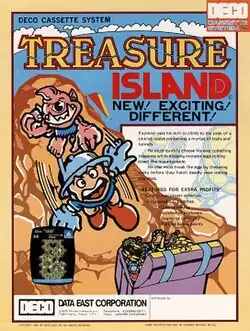 Treasure Island is an arcade video game released by Data East in Japan in 1981, then North America in 1982.[3] It was available for the DECO Cassette System as well as a standalone cabinet.[4] Treasure Island is a vertically scrolling game with isometric graphics. The goal is to climb a sinking island while gathering treasure.[4]