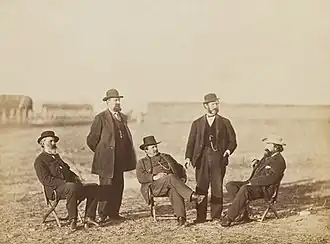 - ^ Sherman was recalled to Washington D.C. in the previous November.[1] According to one source, he "would come and go throughout he life of the commission."[44]: 39 According to the same source, Sherman was also recalled to Washington D.C. the following April to testify in the Impeachment of Andrew Johnson.[44]: 42–3