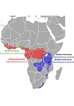 | Western tree hyrax | D. dorsalis | West and Central Africa[6] |