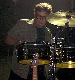 Fred Armisen's drumming is jagged and powerful,[10] and incorporates percussion change-ups.[7] He rarely plays a simple rock beat and instead makes prominent usage of tom-toms and drum rolls, though his drumming stops short from being technical.[10] Damon Locks also provides some of his own percussion, helping to contribute towards the album's unusual percussive sound.[11] The melodies on the album are provided by the guitar and bass.[10] Guitarist Chris de Zutter's guitar work ranges from bombastic post-hardcore to jazz-inspired inflection.[2] Using either simplistic chords or riffs, he plays with a stark, angular tone, and uses guitar feedback at his most chaotic.[10] Wayne Montana's bass provides a "bizarre undercurrent" with his rapid, walking basslines, contributing towards the absence of any solid bottom in the music.[10]