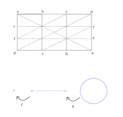 A two dimensional torus, represented as the gluing of a square via the map g, identifying its opposite sites - The projective plane admits a triangulation (see CW-complexes)