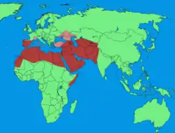 Abdullah bin Aamer al-Hadrami assumed the governorship of Mecca during the time of Othman bin Affan.[71] Al-Ash'ath bin Qays was appointed governor of Azerbaijan. Yemen was divided between Ali ibn Abi Talib and Muawiyah bin Abi Sufyan, with the majority of Hamdan siding with Ali. Their leader, Saeed bin Qais Al-Hamdani, carried the Hamdan banner in both the Battle of the Camel and the Battle of Siffin.[72] Yazid bin Qais Al-Arhabi Al-Hamdani served as one of the messengers of Ali ibn Abi Talib to Muawiyah bin Abi Sufyan, urging him to obey Ali.[73]