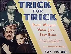 Trick for Trick is a 1933 American pre-Code mystery film directed by Hamilton MacFadden, written by Howard J. Green, and starring Ralph Morgan, Victor Jory, Sally Blane, Tom Dugan, Luis Alberni and Edward Van Sloan. It was released on April 21, 1933, by Fox Film Corporation.[1][2][3]
