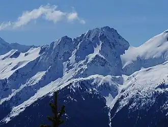 ![]() Tricouni Peak seen from Ruby Mountain | |
