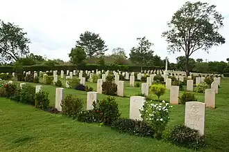 Trincomalee British War Cemetery (also known as Trincomalee War Cemetery) is a British military cemetery in Trincomalee, Sri Lanka, for soldiers of the British Empire who were killed or died during World War II. The cemetery also has graves of Dutch, French, Italian and other allied forces. The cemetery is located on Trincomalee–Nilaveli (A6) Road, approximately 6 kilometres (3.7 mi) north of the town of Trincomalee, on the eastern side. It is one of the six Commonwealth war cemeteries in Sri Lanka, and maintained by Sri Lankan Ministry of Defense on behalf of the Commonwealth War Graves Commission.[2]