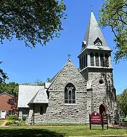 The Rt. Rev. Henry Champlin Lay, the first Bishop of Easton, desired a cathedral for his young diocese. The original plans called for a complex of buildings that included a church, diocesan offices, a library, and a bishop's residence. The buildings were designed to be grouped around a courtyard similar to a traditional English cathedral.[3] Construction on the church was begun in 1891. The granite for the exterior was said to have been shipped by water from Port Deposit, Maryland. While not completed, the first services were held the following year. Except for the spire, the church building was completed in 1894. It was consecrated on May 25 of that year and was put into service as the diocesan cathedral.[4] The stained glass windows date from 1891 to 1979 and reflect the different styles over that time period.[3] The spire on the tower was completed in 1978. The bell that hangs in the tower was cast in the Philippines. It originally hung in the Chapel of the Epiphany in Preston, Maryland.