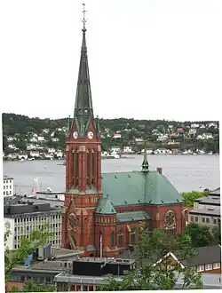 Trinity Church (Norwegian: Trefoldighetskirken) is a parish church of the Church of Norway in Arendal Municipality in Agder county, Norway. It is located in the central part of the town of Arendal. It is the church for the Trefoldighet parish. It is also the seat of the Arendal prosti (deanery) in the Diocese of Agder og Telemark. The red, brick, neo-Gothic church was built in a cruciform basilica design in 1888 using plans drawn up by the architect Christian Fürst. The church seats about 850 people.[1][2]