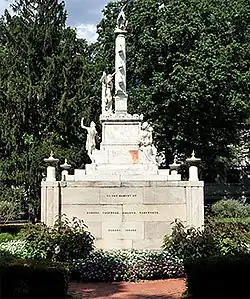The Tripoli Monument is the oldest military monument in the United States.[1] It honors heroes of the United States Navy from the First Barbary War (1801–1805): Master Commandant Richard Somers, Lieutenant James Caldwell, James Decatur (brother of Capt.Stephen Decatur), Henry Wadsworth, Joseph Israel, and John Sword Dorsey. It was carved in Livorno, Italy[2] in 1806 and brought to the United States on board the famous 1797 frigate USS Constitution ("Old Ironsides").[1] From its original installation in the Washington Navy Yard at the new national capital of Washington, D.C. in 1808, it was later moved to the west front terrace of the United States Capitol facing the National Mall in 1831, and finally to the United States Naval Academy campus in Annapolis, Maryland in 1860.[2]