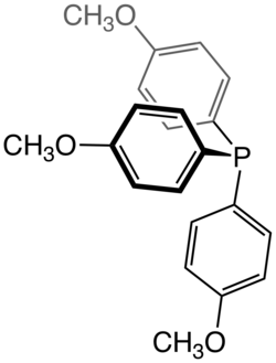 Tris(4-methoxyphenyl)phosphine is the organophosphorus compound with the formula (CH3OC6H4)3P. Several isomers of this formula are known, but the symmetrical derivative with methoxy groups in the 4-position is most studied. The compound is used as a ligand in organometallic chemistry and homogeneous catalysis.[1]