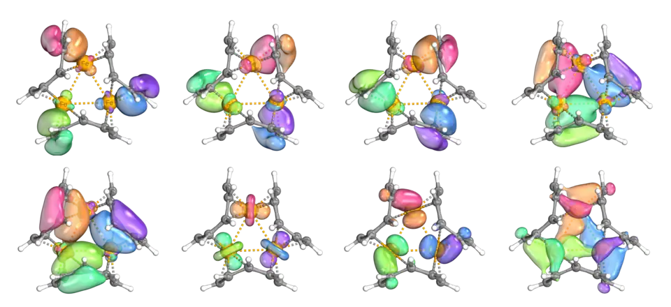 Additional NBO analysis of the singlet structure reveals Wiberg Bond Indices of 0.22 for the Fe-Fe bonds, closely reminiscent of that of D3h Fe3(CO)12 (0.18).[3][19]