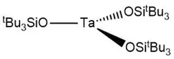 Tris(silox)tantalum, Ta(SiOtBu3)3, is an organotantalum complex bound with three siloxide (this siloxide has three tert-butyl groups attached to silicon, attached via oxygen (tBu3SiO−)) ligands. The tantalum center has a d-electron count of 2 and an oxidation state of III. The complex is trigonal planar whose point group is assigned as D3h. It is a crystalline light blue solid which forms blue-green solutions in tetrahydrofuran (THF).