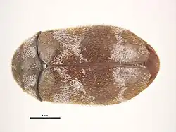 - ^ Yu-Lingzi Zhou; James A Nicholls; Zhen-Hua Liu; Diana Hartley; Andras Szito; Adam Ślipiński; Andreas Zwick (1 November 2022). "Molecular Phylogeny of Dermestidae (Coleoptera) Reveals the Polyphyletic Nature of Trogoderma Latreille and the Taxonomic Placement of the Khapra Beetle Trogoderma granarium Everts" (PDF). Insect Systematics and Diversity. 6 (6). doi:10.1093/ISD/IXAC026. ISSN 2399-3421. Wikidata Q116673277. Archived from the original (PDF) on 2 July 2024.