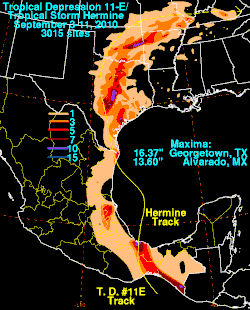 - ^ David M. Roth (2010). "Tropical Depression 11E/T. S. Hermine - September 3–11, 2010". Hydrometeorological Prediction Center. Retrieved November 23, 2010.
