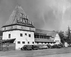 Opened in November 1938, the Tropical Ice Gardens was the first open-air artificial rink in Los Angeles and was designed for sizable crowds to enjoy ice hockey, ice dancing and figure skating shows. Designed to be operated year-round, the building struck a distinct figure in the area; it was designed to be a replica of an alpine village but was surrounded by palm trees.[2] A few years after opening, the venue was purchased by Sonja Henie and unofficially became known as the 'Sonja Henie Ice Palace'. The Ice Gardens were built adjacent to the UCLA campus and became the home of the Bruins ice hockey team upon opening.