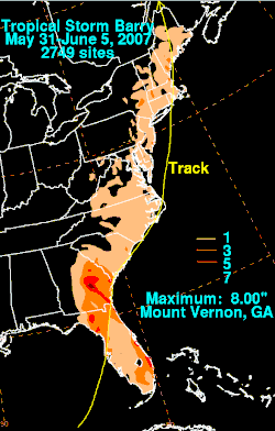 10. ^ a b c d Rubin-Oster (2007). "Public Advisory Number 7 for Remnants of Barry". Hydrometeorological Prediction Center. Retrieved 2007-06-03.