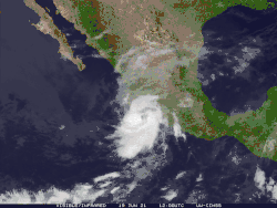 ![]() Tropical Storm Dolores at peak intensity on June 19, 2021. | |