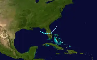 ![]() Tropical Storm Emily shortly after landfall in Florida on July 31 | |