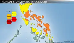 Tropical Storm Higos, known in the Philippines as Tropical Storm Pablo, was a weak tropical storm to hit the Philippines during the 2008 Pacific typhoon season. The name "Higos" is the Chamorro word for fig.[1]