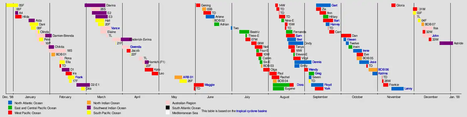 | Tropical cyclones in 1999 | |