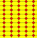 In geometry, the truncated square tiling is a semiregular tiling by regular polygons of the Euclidean plane with one square and two octagons on each vertex. This is the only edge-to-edge tiling by regular convex polygons which contains an octagon. It has Schläfli symbol of t{4,4}.