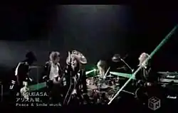The music video for "Tsubasa" features the band members in uniform as they perform in either a dark room filled with green lasers or a large ethereal stage with large panels displaying imagery similar to music visualizations. Several scenes depict vocalist Shou in a room surrounded by mirrors and lasers. Some scenes also show several buildings and a flower crumbling away into blocks.