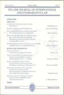 The Tulane Journal of International and Comparative Law was founded at Tulane University Law School, in New Orleans, Louisiana, as an outgrowth of that institution's historical tradition as a signpost in the academic world for international and comparative law. The Journal is dedicated to discussing and debating all facets of international law, from human rights to transnational commerce to the historical evolution of current global law. The Journal is one of the leading law reviews in international and comparative law and, in terms of citation, is in the top quarter of all journals in the nation.