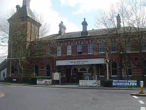 Following closure of the station, the main building was converted into a Beefeater restaurant named "The Old West Station", before being purchased by Herald Inns and Bars which operate it under the same name as a pub-cum-restaurant. It is now a Smith & Western. The building was Grade II listed on 27 March 1986.[24] The former goods yard and stabling sidings are lost under a Sainsbury's supermarket and a Homebase, and the trackbed was made into a car park and the frontage to the supermarket. An agreed corridor was left alongside Linden Park Road to enable any reinstated line to run through the site and a formal agreement was concluded between Tunbridge Wells Borough Council and Lord Sainsbury whereby the company agreed that, if required, they will remove at their own cost any buildings obstructing the path of the railway.[4] In the mid-1990s, a toilet block was constructed on the corridor, but this could be demolished in accordance with the terms of the agreement.[25]