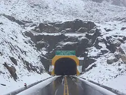 The Punta Olimpica Tunnel is a vehicular transportation tunnel through high mountains, connecting the Callejón de Huaylas and Conchucos valleys of the Cordillera Blanca mountain range in Peru. The tunnel is intended to ease traffic on Route AN-107, one of the cross roads in the Ancash region linking the cities of Carhuaz, San Luis and Chacas a distance of 100 km. With a length of 1,384 meters (0.860 miles), is the longest vehicular tunnel of Peru and the highest in the world, located at 4,735 meters (15,535 feet) above sea level.[1] Its drilling began on May 15, 2012, and ended on February 24, 2013. It opened in August 2013 in conjunction with Route AN-107.