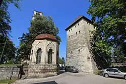 The Turbe mausoleum was built to show reverence for the defenders of the city who died in the fight against the Austro-Hungarian troops. The turbe was first made of wood, but a church was built on the site of it during 1890, and the Austro-Hungarian government, in order to get approval from the Muslim population of Bihać, built the current turbe at its own expense. However, some sources state that the turbe dates from the time of the Ottoman rule.[1]
