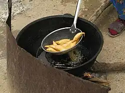 Gowurma is deep-fat-fried meat in bite-sized chunks, typically cooked in a cauldron (Turkmen: gazan, a large hemispherical iron pot placed over an open fire). Gowurma is used in various soups and can be eaten hot or cold, or put up for later use.[2]
