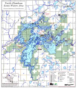 - ^ a b c d "Water Detail – Turtle Flambeau Flowage, Upper North Fork Flambeau River,Flambeau Flowage Watershed (UC13, UC14)". Wisconsin Department of Natural Resources. Retrieved October 29, 2020.