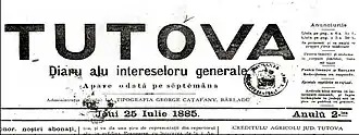 Tutova - weekly newspaper, published irregularly from 29 September 1905 until 24 December 1909 [1][2]