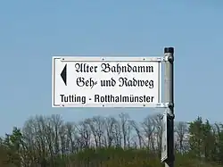As a result, the section from Tutting to Kößlarn became a stub line that was operated independently. This Lokalbahn proved to be just as unprofitable as the railway from Simbach am Inn to Pocking. In 1921 three pairs of trains ran daily between Tutting and Kößlarn, each covering the 9.8 kilometre long stretch in 38 minutes. From the winter of 1953/54 Uerdingen railbuses were also laid on, reducing the journey time to just 22 minutes. Nevertheless, the Deutsche Bundesbahn withdrew its passenger services on 2 October 1960. Goods traffic between Rotthalmünster and Kößlarn ended on 1 January 1970, and on 1 January 1996 the remaining section between Tutting and Rotthalmünster was closed. The entire line has now been dismantled and a cycle path built on the old trackbed.