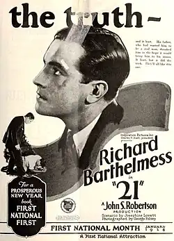 Twenty-One is a 1923 American silent drama film directed by John S. Robertson and starring Richard Barthelmess, Dorothy Mackaill, and Joe King.[1][2]