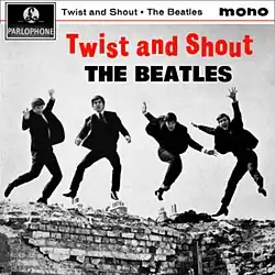 Twist and Shout is the first UK extended play by the English rock band the Beatles, released in the UK on EMI's Parlophone label on 12 July 1963. It contains four tracks produced by George Martin that were previously released on the band's debut album Please Please Me. Rush-released to meet public appetite, the record topped the UK EP chart for twenty-one weeks, the biggest-selling EP of all time in the UK to that point, and became so successful that it registered on the NME Singles Chart, peaking at number four. The EP's cover photograph, featuring the Beatles jumping in a London bombsite, has been described by The Telegraph as "one of the key images of the 1960s".
