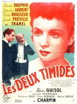 Two Timid Souls (French: Les deux timides) is a 1943 French historical comedy film directed by Yves Allégret, Marcel Achard and Marc Allégret and starring Pierre Brasseur, Jacqueline Laurent and Claude Dauphin.[1] It was based on the 1860 play by Eugène Labiche which had previously been turned into a 1928 silent film version by René Clair. The film's sets were designed by the art director Paul Bertrand.