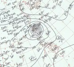 ![]() Surface weather analysis of Typhoon Joan at nearing landfall in Taiwan on August 29 | |