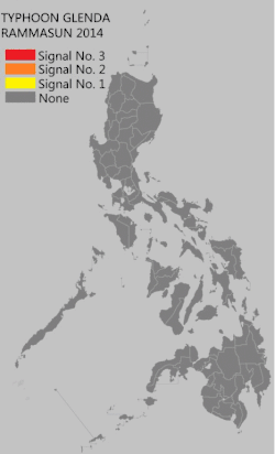 - ^ "GLENDA UPDATE: Typhoon Glenda intensifies; More areas under storm signal". Inter Aksyon. Archived from the original on 15 July 2014. Retrieved 14 July 2014.